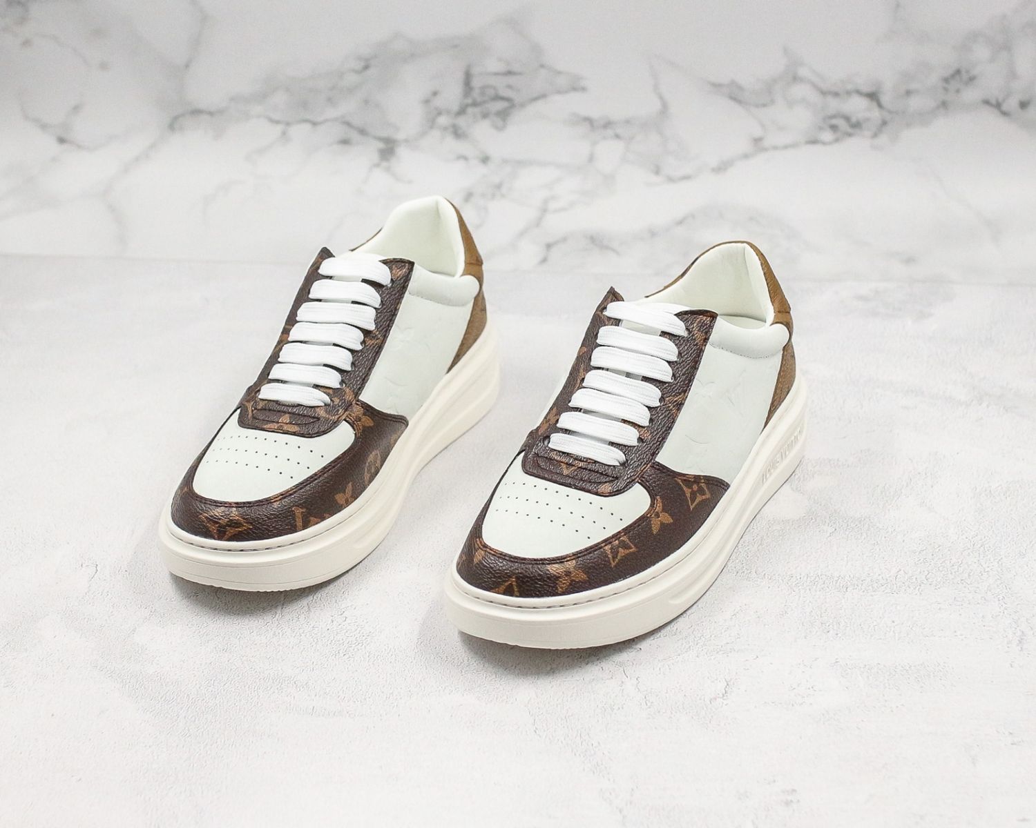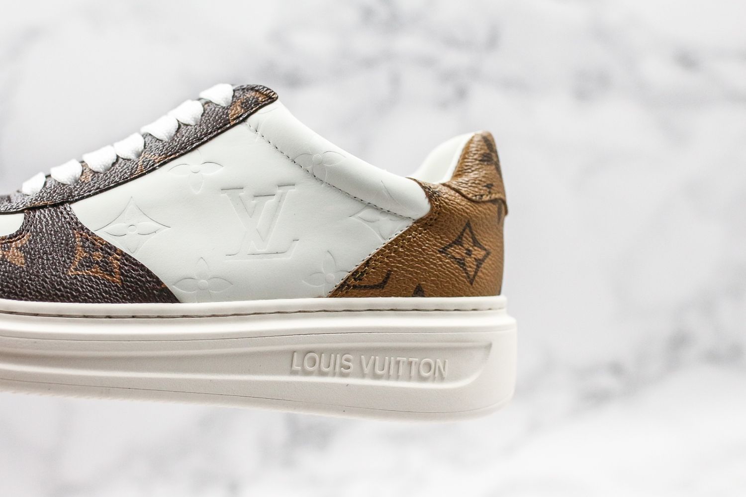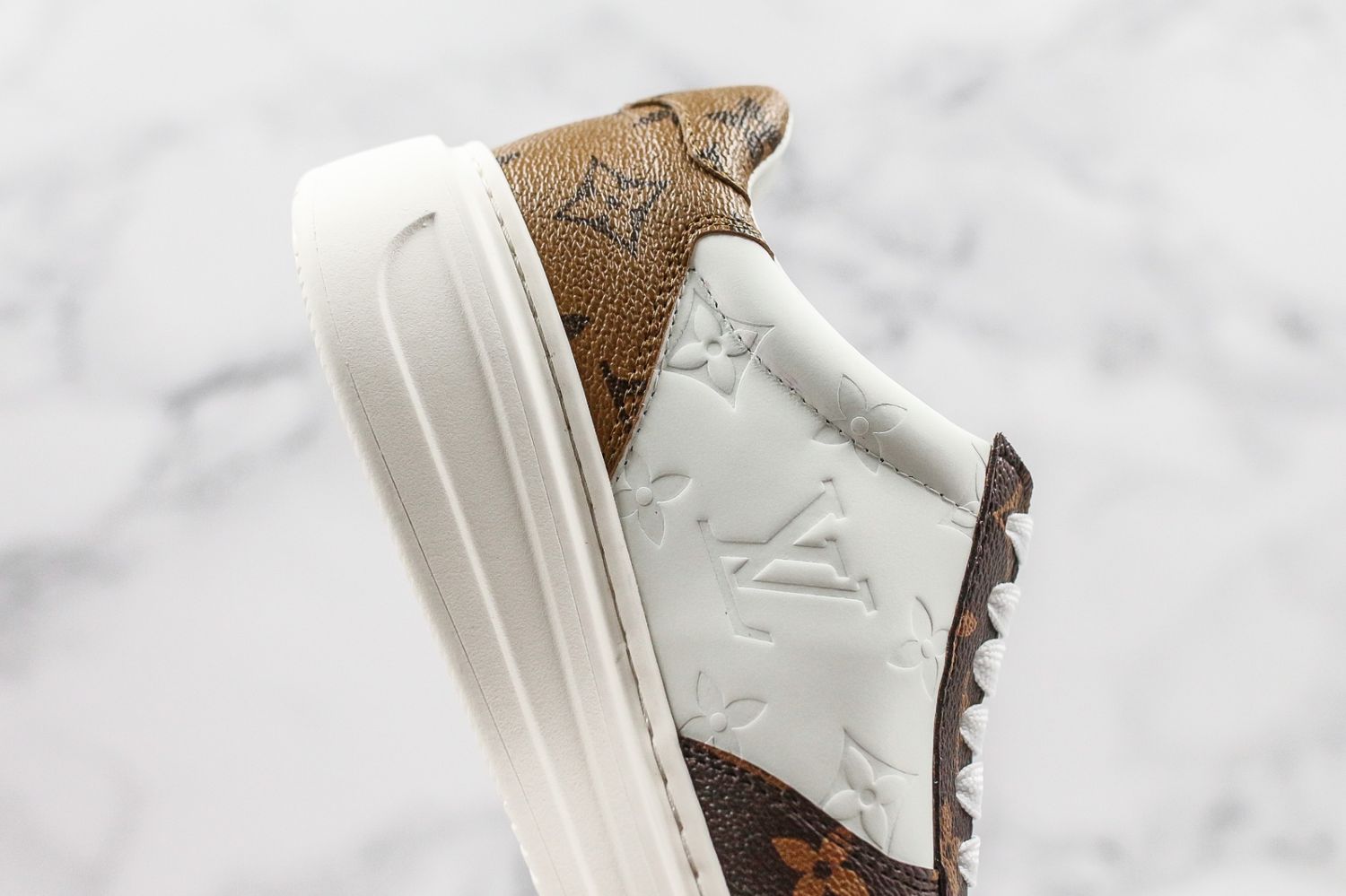 Louis Vuitton LV Embossed Monogram Timeout Sneaker "white brown