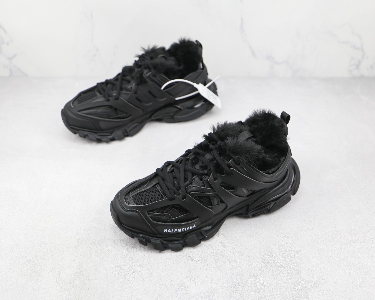 Balenciaga Track Faux Fur Black Black